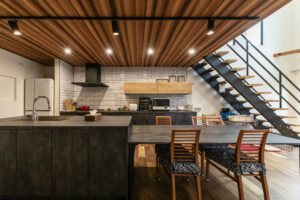 高級感を出すため、天井には木目のクロスを採用したとの事です。