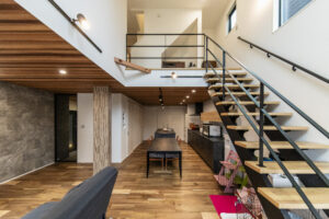 W様邸最大の魅力となっている、吹き抜けが気持ちいい開放的な空間。