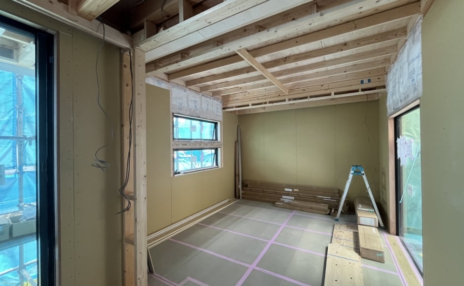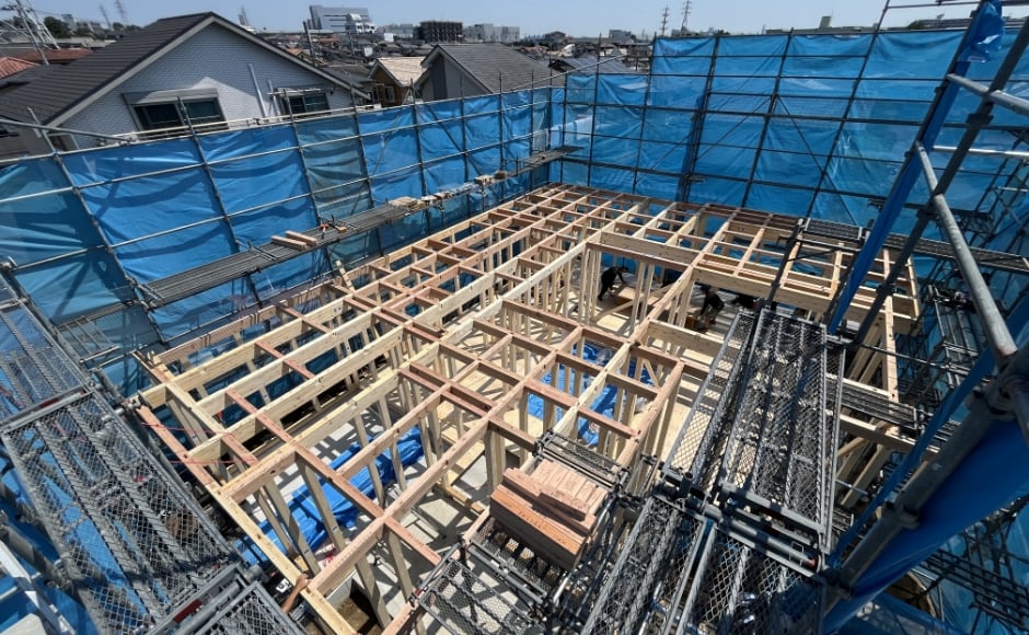 壁や階段、建具の取り付けやフローリングを張ったり大工さんのやる事は多岐にわたります。また、他の各工事会社さんでサッシや玄関ドアを取り付けたり、電気やガスの配線工事をおこないます。