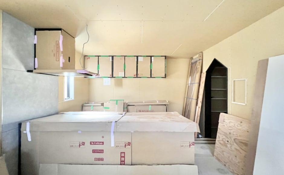 木工事が終わったら内装の仕上げ工事が始まります。壁紙を張ったり、キッチンなどの設備を設置したり、照明を取り付けたり完成に向けての最終仕上げ工事は丁寧に、心を込めて行います。