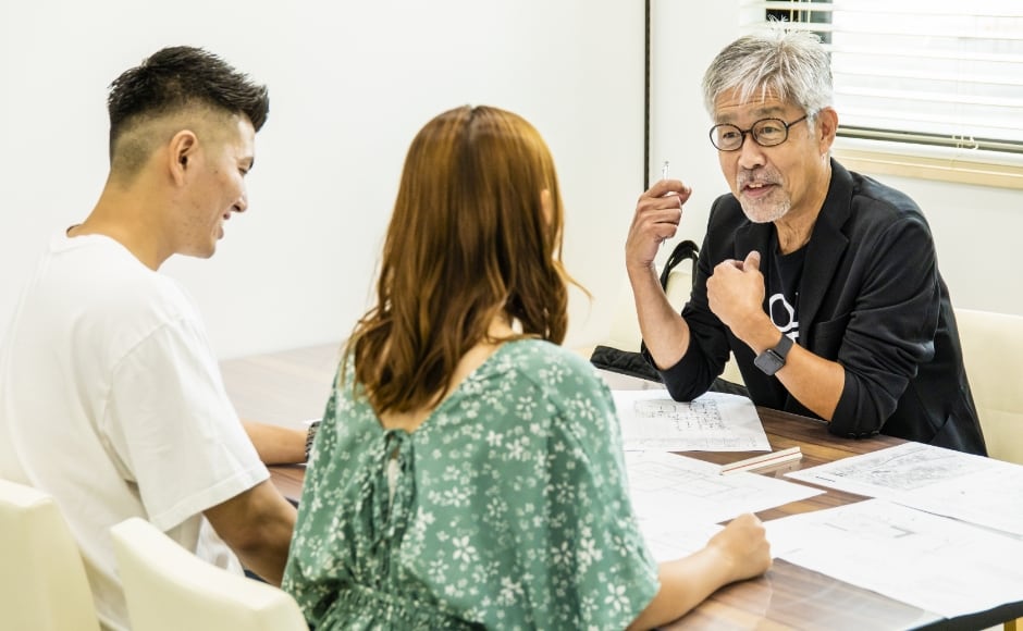 建築士とドキドキの初打ち合わせ!お伺いしたご要望を建築士が改めてヒアリングします。経験豊富な建築士からは、たくさんの提案も!