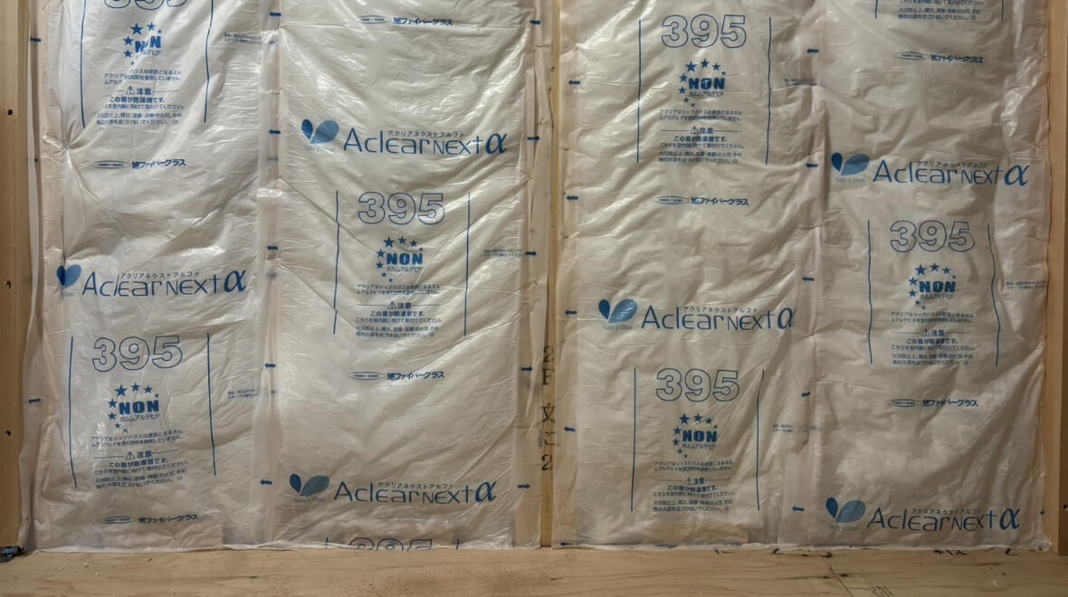 グラスウールは細いガラス繊維が絡み合って作られる空間によって、熱を伝えにくくしている断熱材です。アクリアはこの繊維をさらに細く、たくさんの繊維を絡み合わせることで、より高い断熱性能を実現した高性能グラスウールです。アクリアはシックハウスの原因となるホルムアルデヒドを使用しておらず、発がん性に対しても安心です。