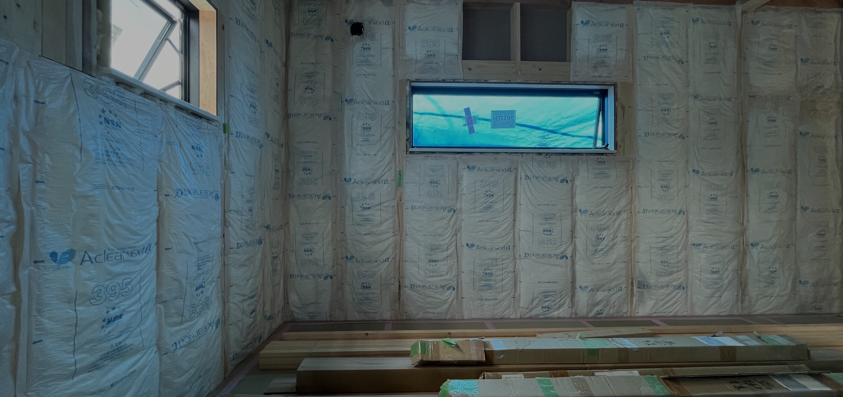 職人の施工精度は、住宅の気密性を高める上で非常に重要です。高気密住宅は、設計段階からの丁寧な計画と、施工現場での熟練した技術が不可欠であり、建材の接合部を隙間なく施工することが求められます。当社では気密施工に対する指導・品質管理を重点的に行っています。