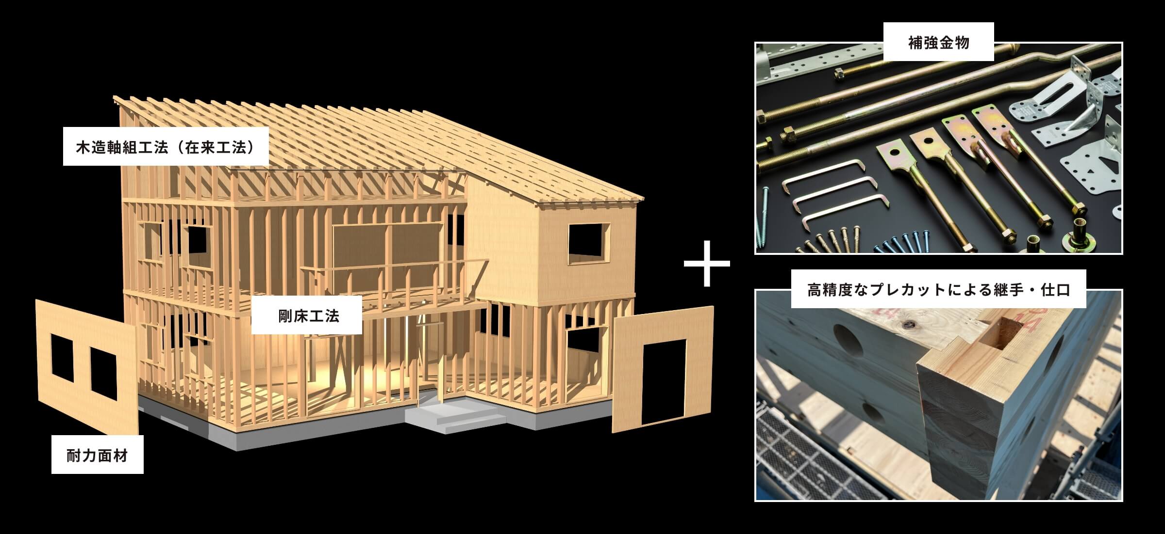 橋梁・ビルで採用されている制震技術を用い、木造住宅用に開発されたシステム