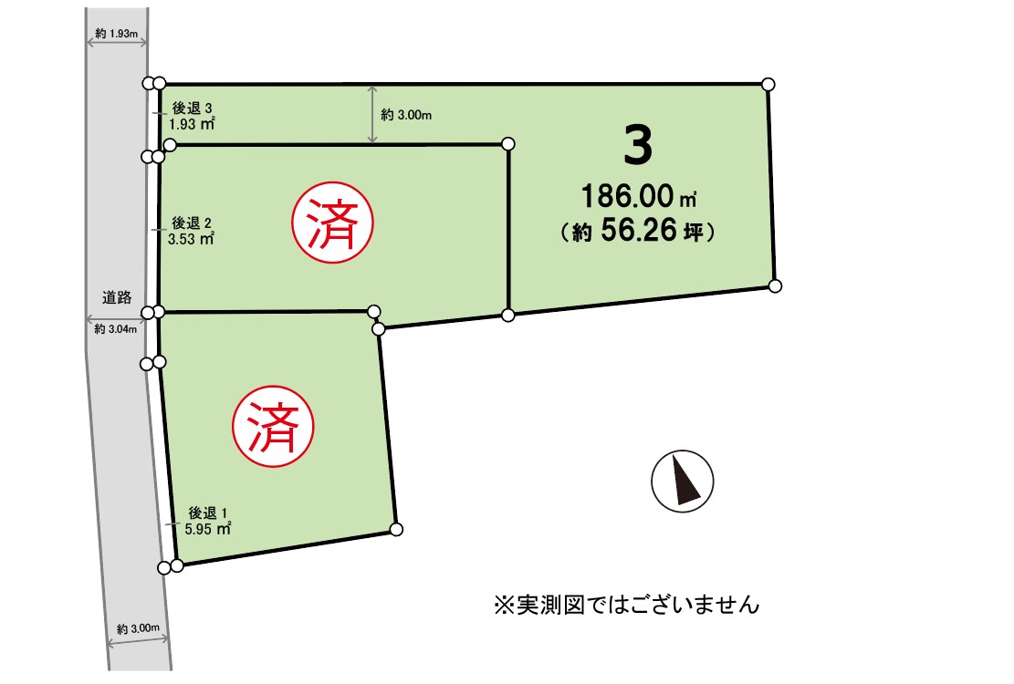接道:北西幅員4m(公道・私道)、ただし公道幅員2.98m