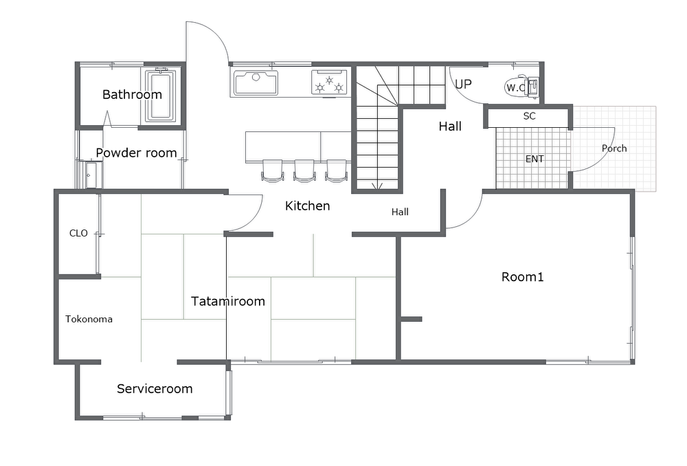 ・古民家風建築【雰囲気の有る木サッシ・真壁(塗壁)・大理石の暖炉を採用】