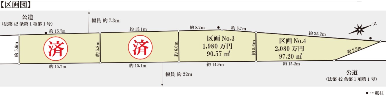 接道:北西側 約7.11m、南東側 約22.0m(42条1項1号道路)