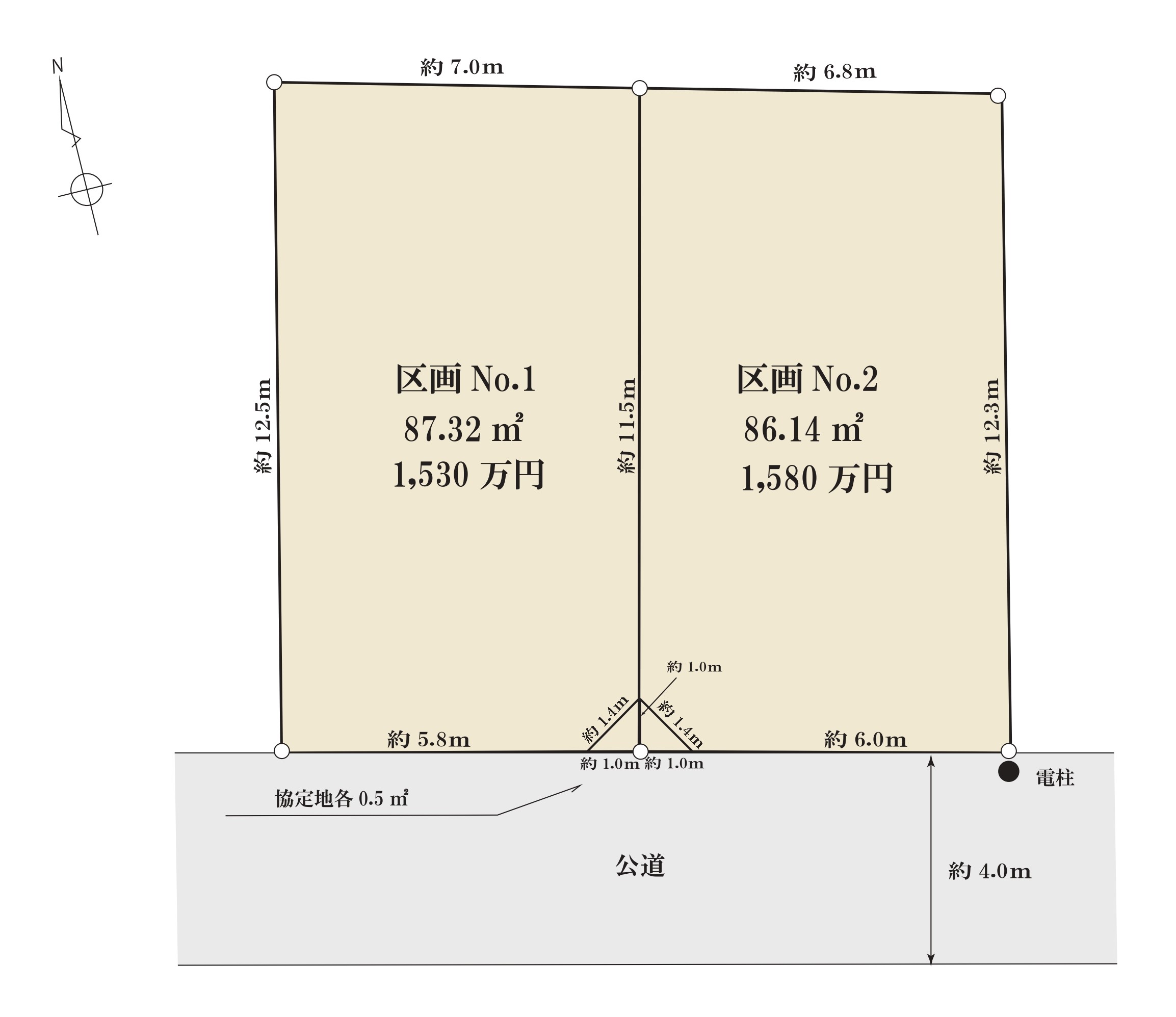 | その他制限事項 | SB面積なし・No1.No2共に協定地各約0.5㎡含む |