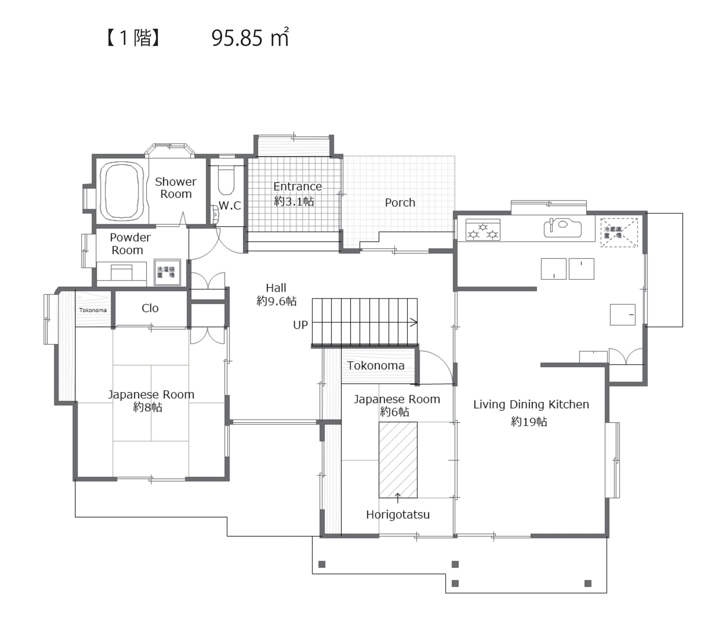 ■旅館のような広々玄関&エントランス、掘りごたつや真壁和室が彩るモダンな室内。